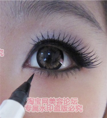 下面教大家一个小秘诀,很多MM问我没有什么下睫毛,怎么刷才好看呢?其实很简单,用眼线来代替吧。