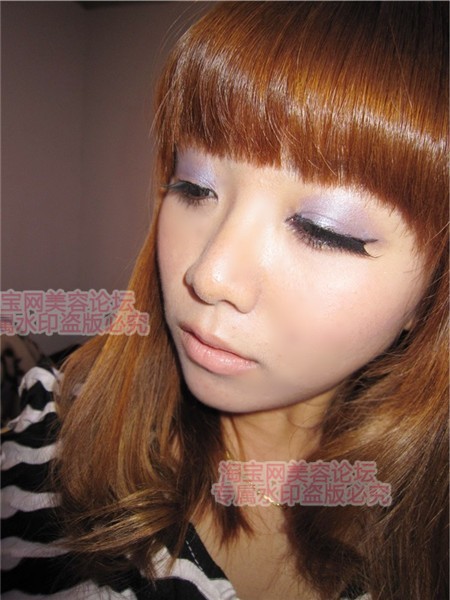 贴假睫毛,我用的是眼尾加强型的,大爱啊。跟眼线完美结合,整个颜色都飞了起来,吼吼。
