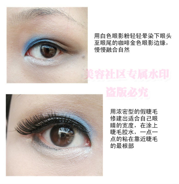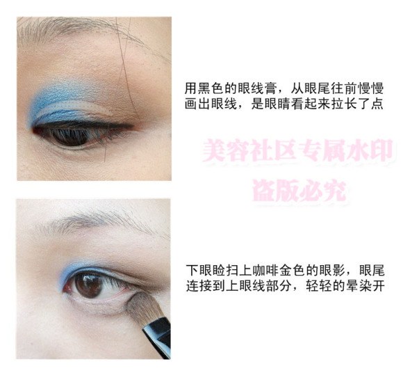 这个妆很好学 没有复杂的眼影用色 仅仅以咖啡金色和蓝色的眼影 就能画出超魅惑奢华的野性眼妆哦