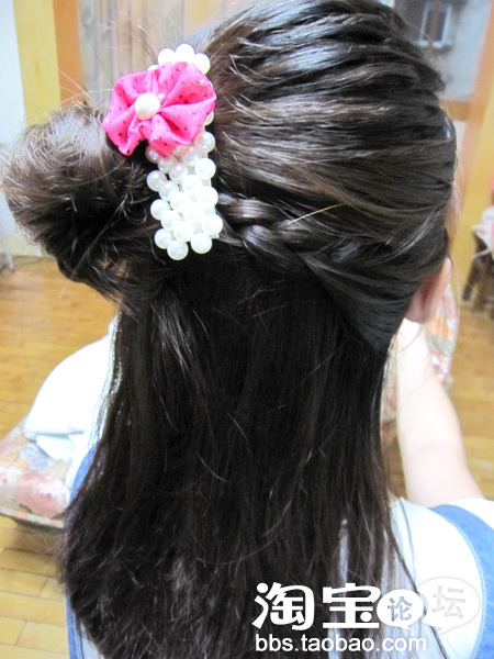 把头发拉圆,再用U型卡固定好