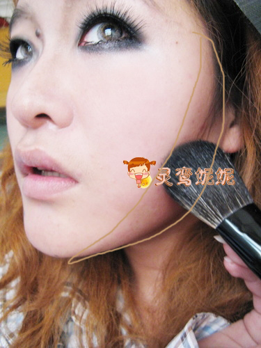 修容部分——白色的地方高光提亮,棕色的事鼻影和修脸型