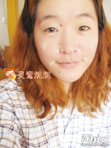 在黑眼圈,鼻翼,嘴角等肤色偏深的地方补一层~啊,还有红血丝~