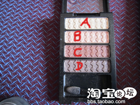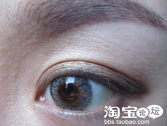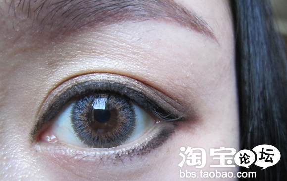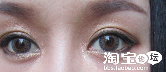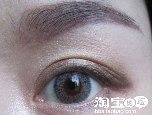 有点金色亮亮的感觉,不知道怎么搞的,照相照的不太明显,再用9号眼影中的1号色抹双眼皮和双眼皮以上的位置,
