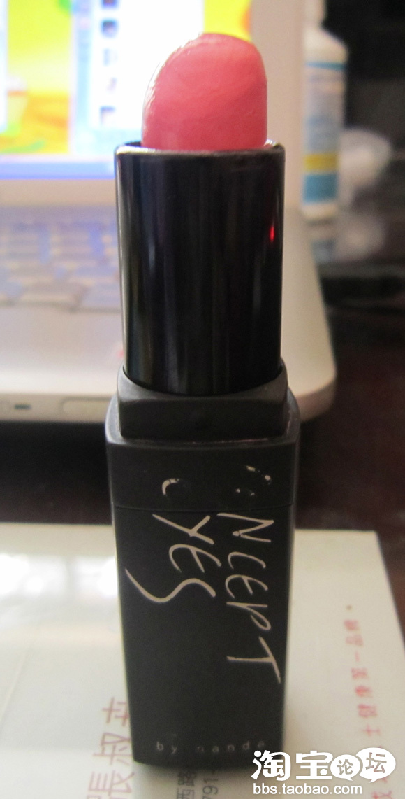 最后用口红上色,先用7号打底,再用4号,最后用13号唇彩打亮。这个口红本来色很时尚的,不知道为什么照出来就有些红了,实际上是有些白白的色。很多韩国明星都会用到这款色。