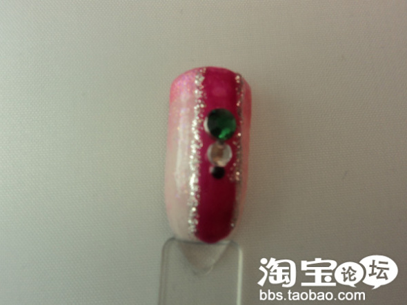 6.把海绵剪成略宽与指甲的形状,在边缘图上上图型号的甲油