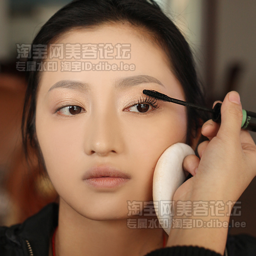 眼影都涂好以后,我们开始上睫毛膏.模特本身睫毛较长,