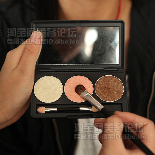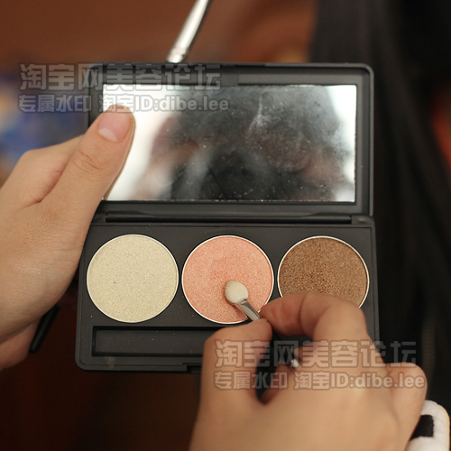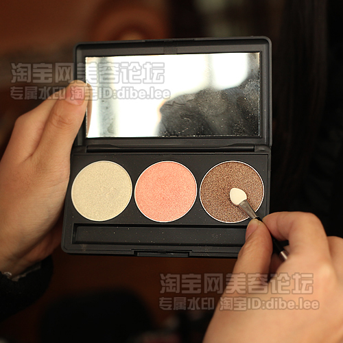 然后开始画眼影,选择蜜瓜色,这种蜜瓜色里面有金色的亮粉.