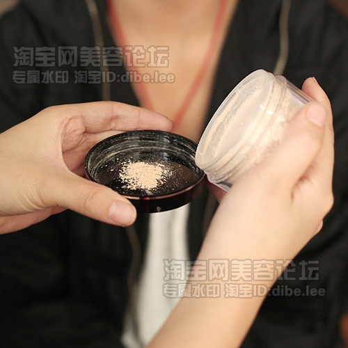 再把散粉倒在散粉扑上,揉搓散粉扑,再在脸上按压.