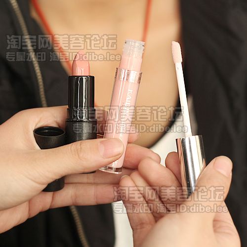 选择裸色口红和粉色唇彩.做出自然的唇色.