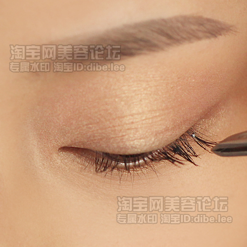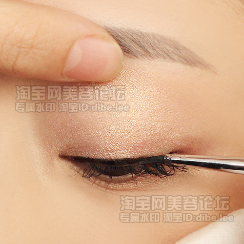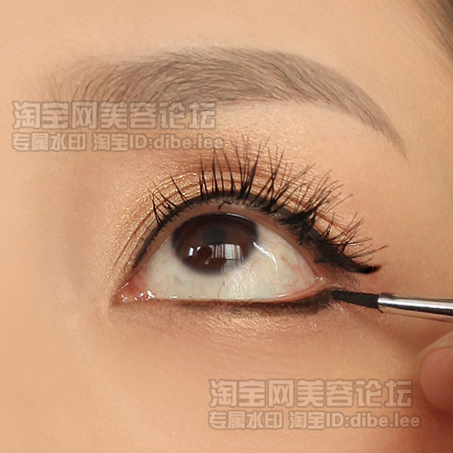 用沾有咖啡色眼影的眼影棒.晕染下眼线.