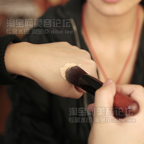 让刷头全部沾满粉底液.完后在手上先试下颜色.再往脸上涂