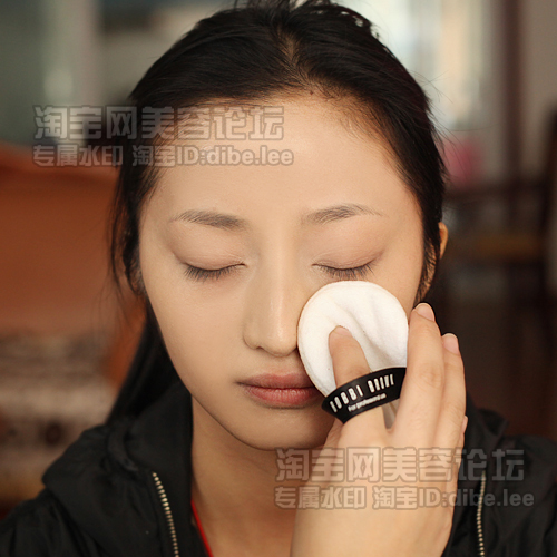 这个时候可以利用海绵扑上的余粉把脖子和脸连接的地方打上薄薄的一层粉底液.