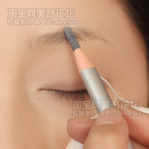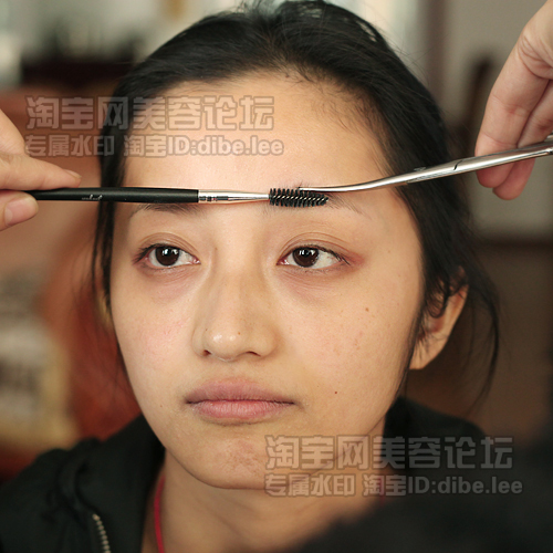 眉头的眉毛应用眉刷向上刷,把过长的眉毛修剪掉.眉尾应向下刷,把过长的眉毛修剪掉.