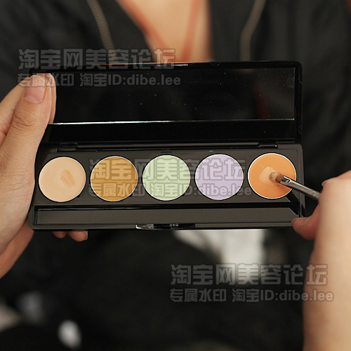 使用遮瑕盘.我们选择浅黄色,和橘黄色,调和出适合自己黑眼圈的颜色.