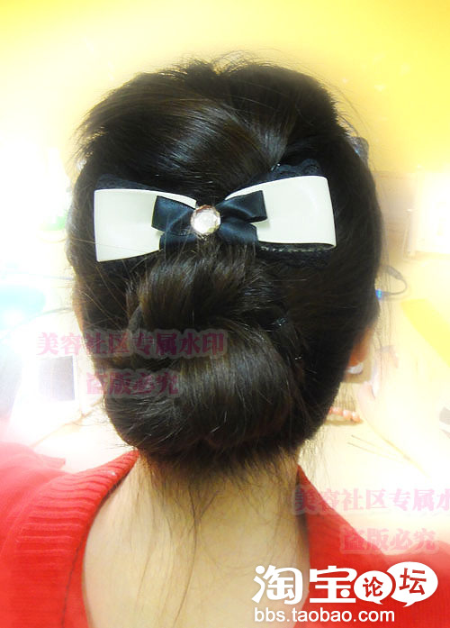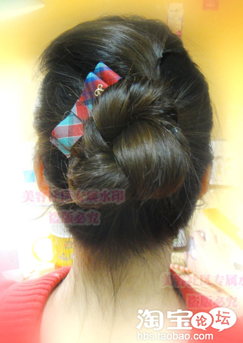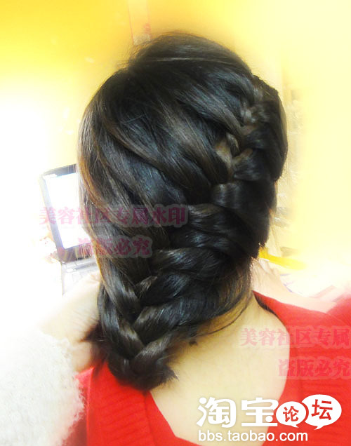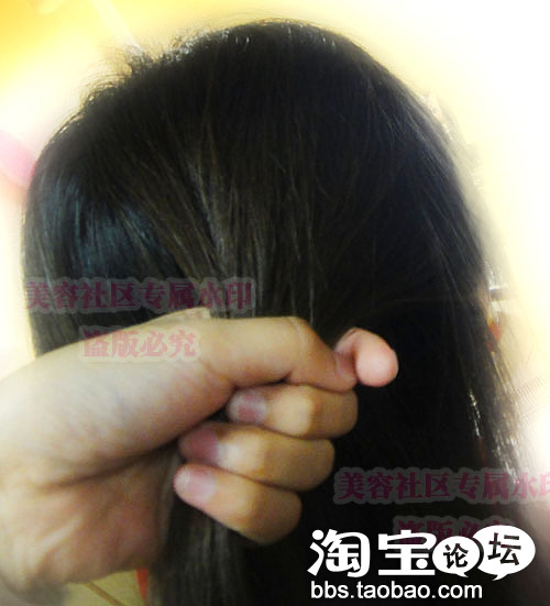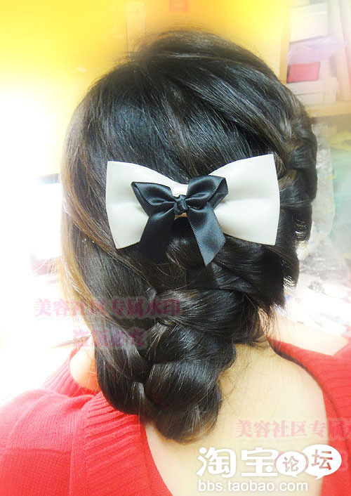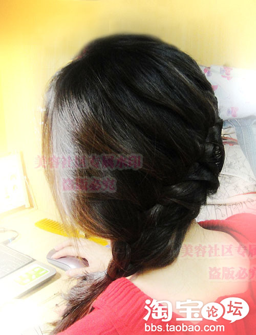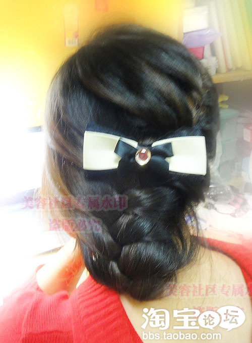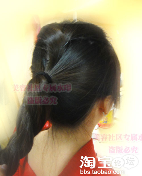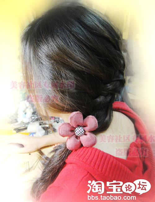 发尾用黑色的夹子固定住哦.不然掉出来就不好看啦.