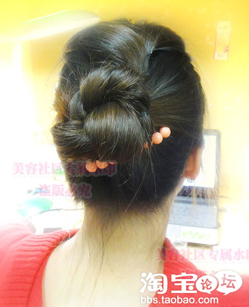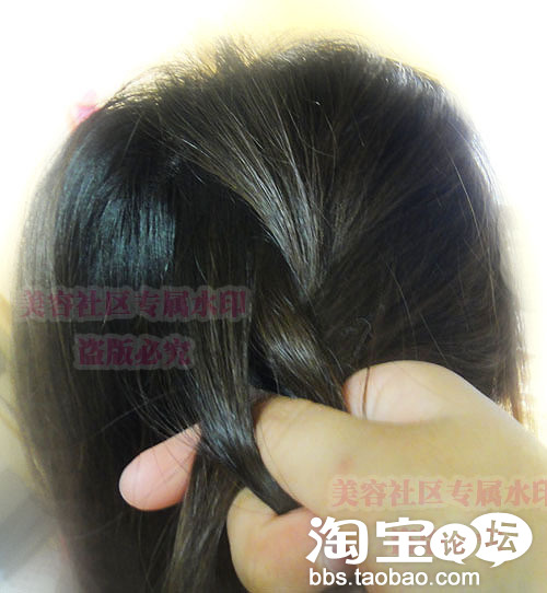 第五步:一直往上扭啊扭发尾用夹子固定哈.