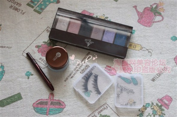 睫毛步骤:上假睫毛+下假睫毛+胶水