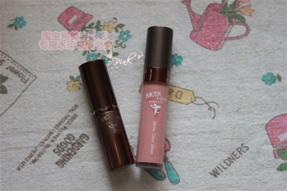 口红不是一般的那种粉,有点发橘色。唇彩是用的裸色~