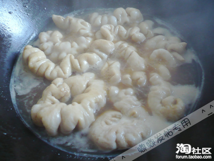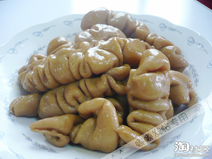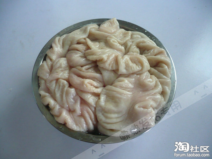 话说猪大肠很难清洗,通常嘟嘟是用流水清洗,将大肠反过来,一直冲刷,据说用点花生油和面粉能够更好清洗,不知道有效不,下次试试,图中的是清洗好的哦……
