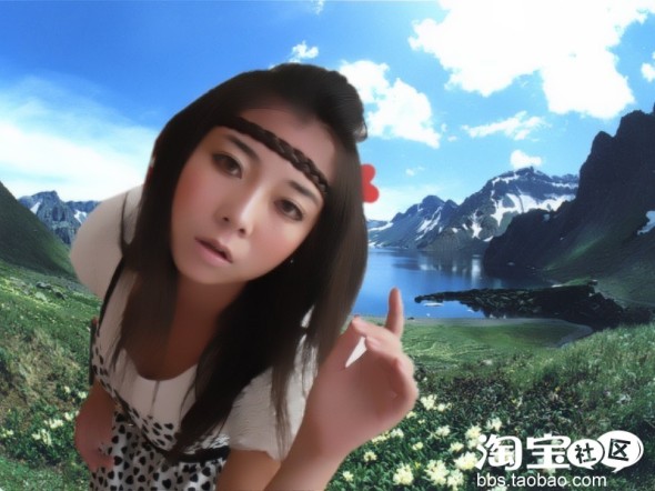 下面来个网络的一个朋友给我PS抠图的照片,嘻嘻,谢谢他了哦,感觉有点假,虽然不是我想要的那种背景效果,但还是非常感谢哦