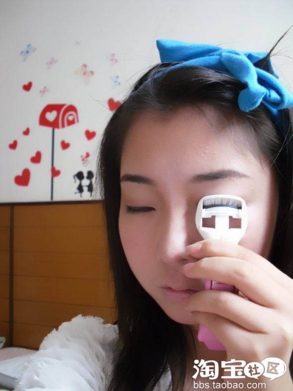 睫毛夹住10秒,固定住形状,嘻嘻,为贴夹睫毛做准备