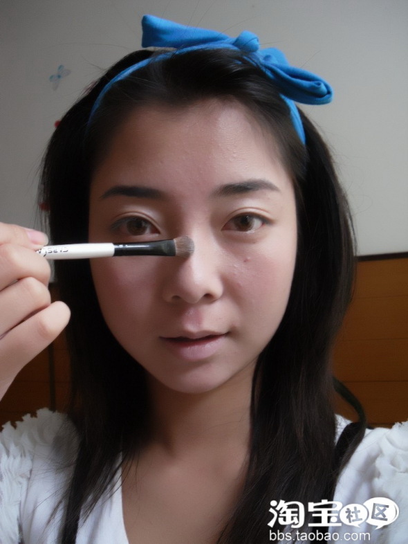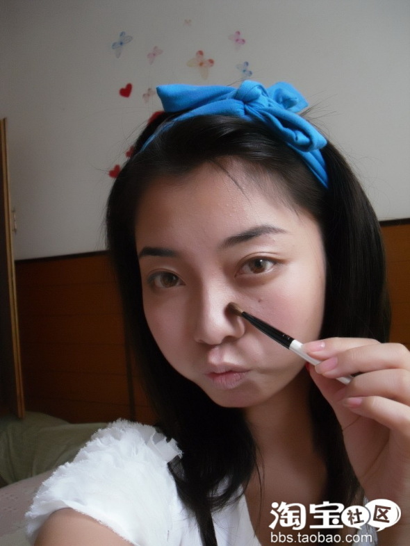 在鼻梁的两侧图上暗粉哦,嘎嘎