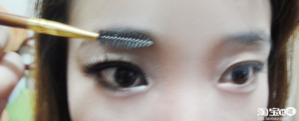 妞的眉毛还蛮浓密的,用眉粉顺眉毛扫过后,用没刷刷刷柔和一下笔触,这个很推荐亲学习哦,不管