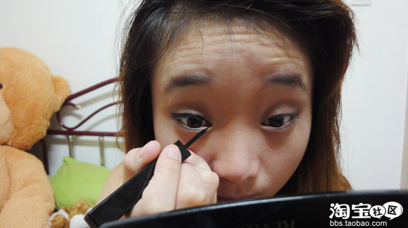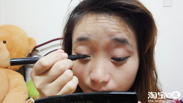 眼线液从内眼角开始画起记得一定要紧贴睫毛根部,露华浓的眼线液笔很适合新手使用非常的方便,