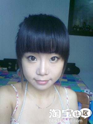 丫头皮肤比较黄 所以用了淡紫色的 能调下肤