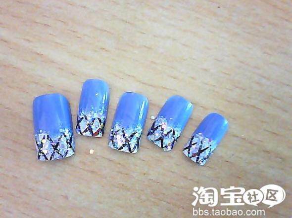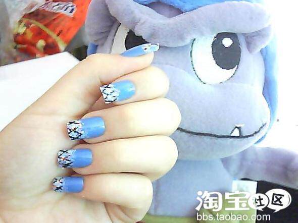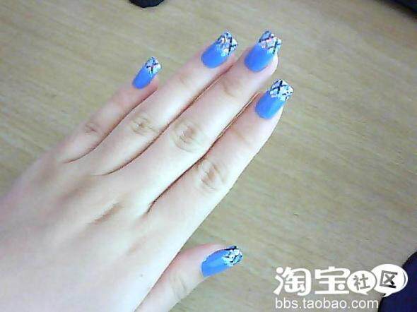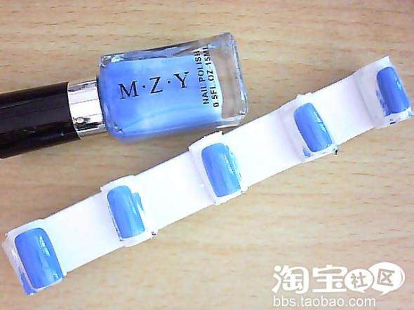 第三步:涂上蓝色指甲油