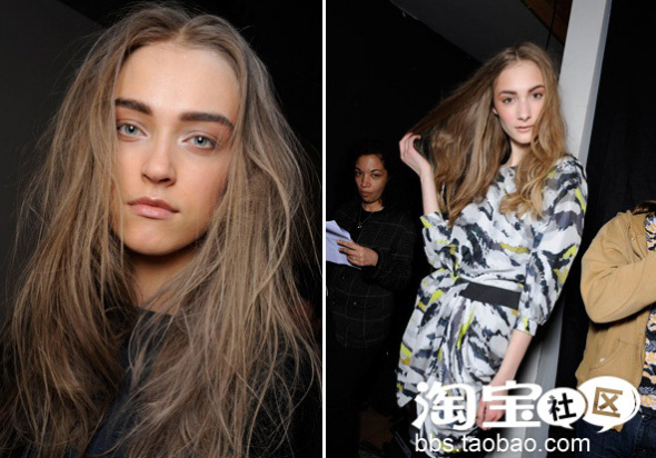 什么叫半成品发型?也许可以叫做未完成发型(Undone Hair),就是微微凌乱看起来似乎发型师在工作中途暂时离开时候的发型。在2010秋冬Thakoon后台,造型师就是用这种发型来打造他口中”美得伤天害理(nice blowout that’s been trashed)“的模特们。