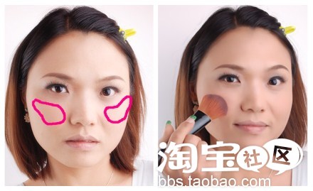 一定要用腮红刷哦,不然看上去会不均匀的,而且这个腮红的海绵比较硬,不太好用。