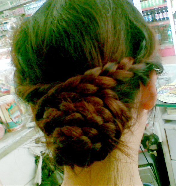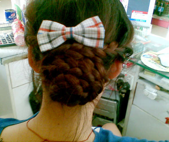 PS:这个发型最好是头发没有层次的MM弄,因为头发没有层次才好扎辫子,扎辫子的时候也要注意不要扎太紧了,扎好了之后要把辫子拉松,这样出来的髻看起来更自然,貌似我辫得有点紧了.
