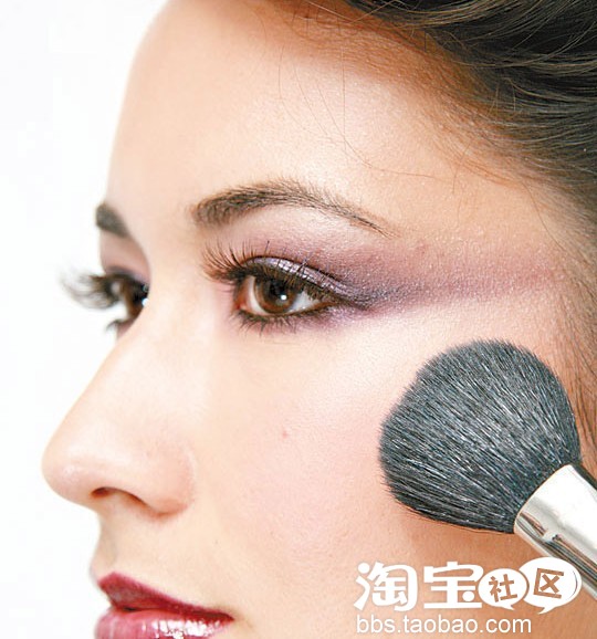 4 在颧骨位置打斜扫上粉红色胭脂,令面形看起来更尖。