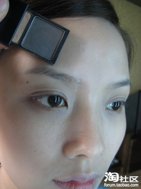 顺着眉毛生长的方向淡淡刷过,眉头要淡,眉尾也不能太浓,这样的眉毛才有立体感