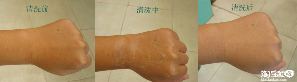 这个东东易于清洗的干干净净,脸上不留沉淀物质,护肤更健康澳,下面是一个与某国产大品牌的对比澳,大家一看就会明白の:
