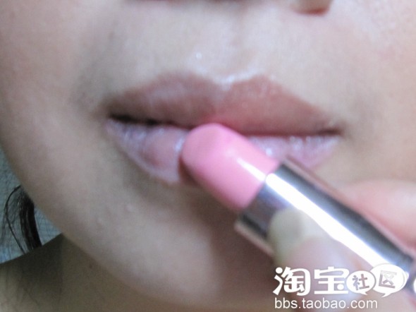 上次忘记涂嘴嘴的过程,这次补上。桃粉的口红特别可爱!