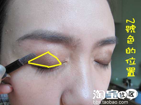 接着在眼头处涂上1号色,让眼睛更加凹陷。