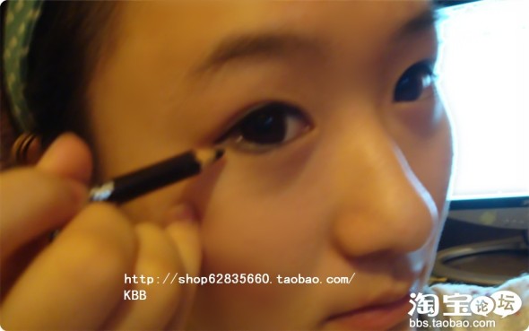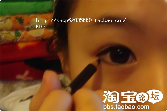 接下来就是画上眼皮咯,拿出你那根黑色的眼线笔跟我一起做~~1234、2234