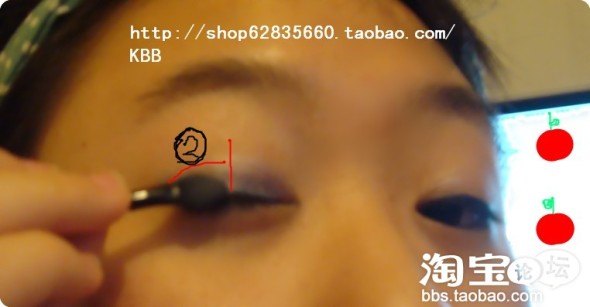 红色笔画的部分是眼线液笔涂的地方,不可重复,一定要细,细而在细,总之就是非常细。