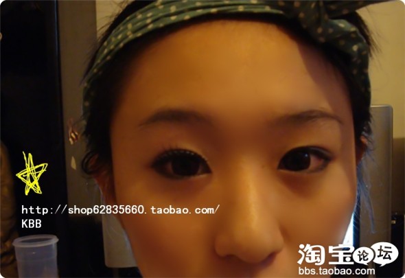 哎哟不错哦,这就是花完眼线的样子了,眼角也画好了,不会显得圆圆的吧。