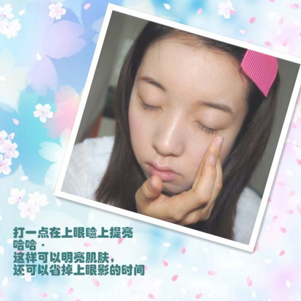 step 4: 蜜桃元气粉增加妆容立体感和提亮眼睑