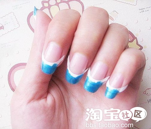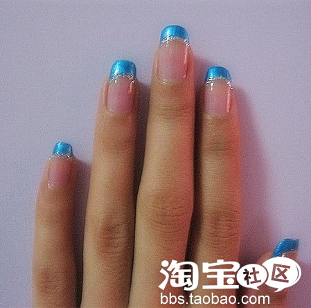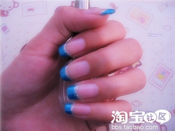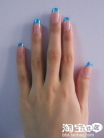最后一步:就是再上一层透明护甲油,完成!是不是很简单呢,希望MM们会喜欢这款法式甲哦