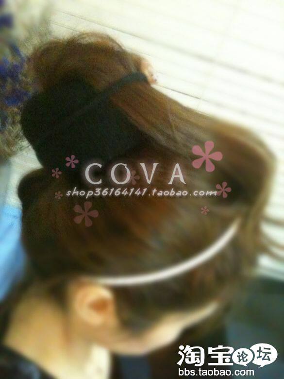4.将多出来的发尾塞到甜甜圈后面接近根部的地方,头发较直、较滑的MM可以用小夹子帮忙。