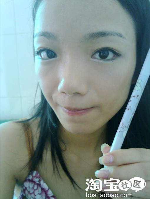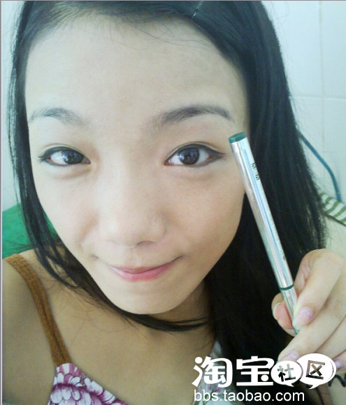 画眼线,很多MM觉得眼线不好画。使用眼线笔,容易晕染,使用眼线液,又不好掌握技巧,这里告诉你个好用的宝贝,黑色眼线液使用vov绿茶笔状眼线液,很容易上手。