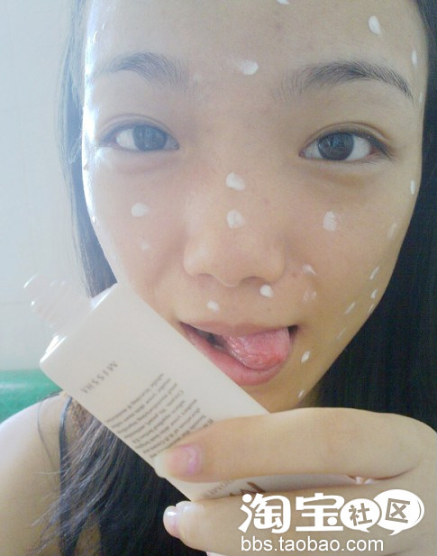 接下来使用妆前乳,采用涂抹的方式,均匀涂在脸上,涂完之后毛孔小了一些,肤色也明亮了点儿,味道也不错。用的是谜尚妆前乳。