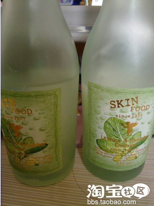 洁面后擦爽肤水+乳液,用的是skinfood生菜黄瓜水和乳,清爽保湿型的,爽肤水有的稠,但是一点儿都不油腻,乳液味道很好闻,吸收很快。洗面奶用的是tfs芦荟洗面奶,非常滑,保湿效果也不错,好大一管,