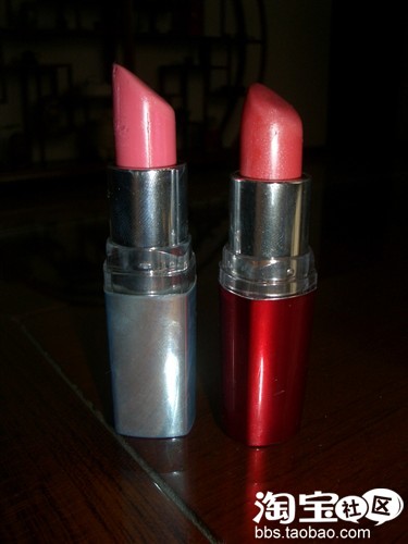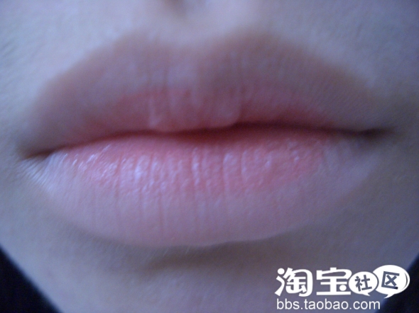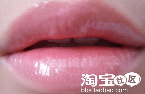 可以看出区别吧,虽然不明显,但是深浅还是分得出的,最后呢,就是涂闪闪亮亮闪闪亮亮的唇彩的时候啦!千万不要涂太厚,否则。。。