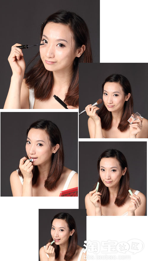 眼影的颜色切忌过于花哨,大地色系是最安全的颜色。心机一点的可以用些珠光感的肉白色提亮眼头和卧蚕,为什么?卧蚕在面相学里代表的是生育能力,你们懂的啦,大家长们最喜欢小BABY~!