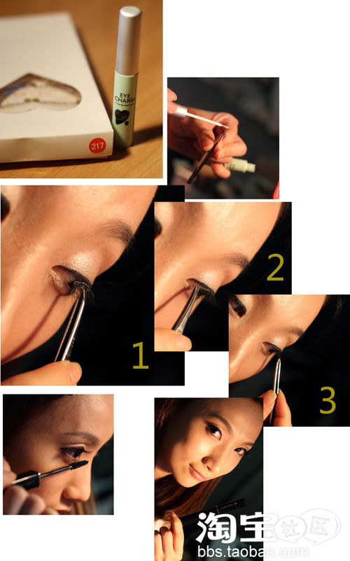 眼睫毛,是整个眼妆的亮点~!菲菲在这里选用的是很自然的透明梗手工编制假睫毛,编号是217的,据说是台湾制,谁知道呢?好用就行了,一对的价格也才1.6,貌似效果还不错,你们看呢?
